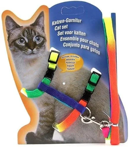 Adjustable Harness with Leash Rope Set for Cat/Kitten of Nylon Rainbow Color