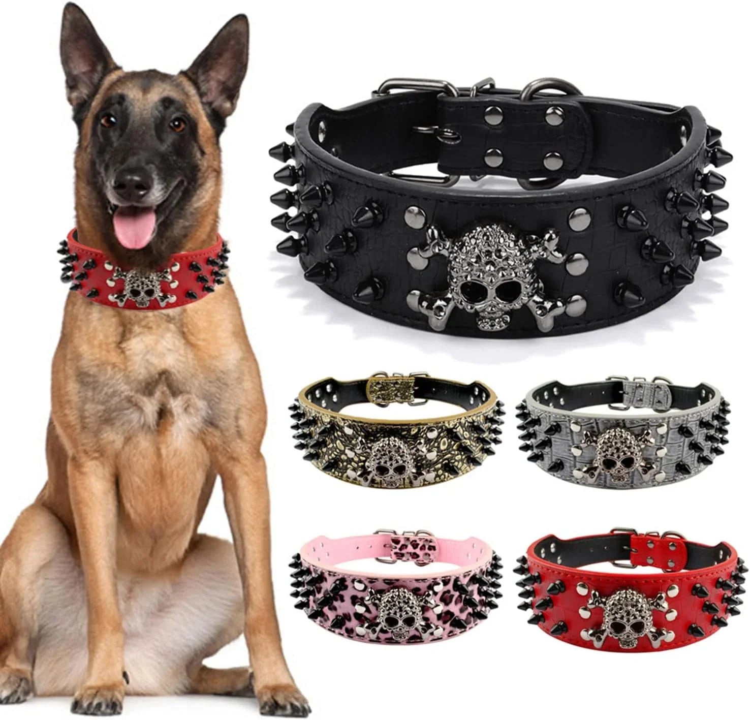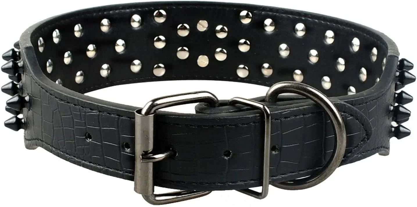 - 【Durable Collar with Protective Rivets】The bullet spiked nails of the leather dog collar are not very sharp, so they won't hurt your pet.The rivets leather collar will protect your dogs from attacks by other large dogs around the neck. Being chic and trendy, this wide large dog collars tend to be safer and stronger,giving your lovely pet extra protection.
