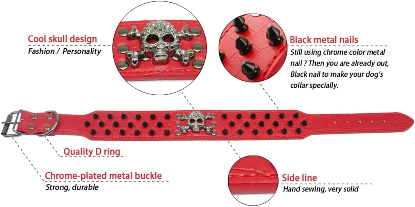 - 【Comfort Collar for Dogs】The skull leather collar will fit for dogs even includes breeds like Great Danes, Mastiffs, Doberman pinschers, Rottweilers, German shepherd and others of similar size.Also the Sighthounds, like whippets and greyhounds, might also get protection from this wide leather collars, at the same time, the rivet leather collar will provide extra protection for these dogs which are notably more fragile than other dogs because of the thin frame from attacks.