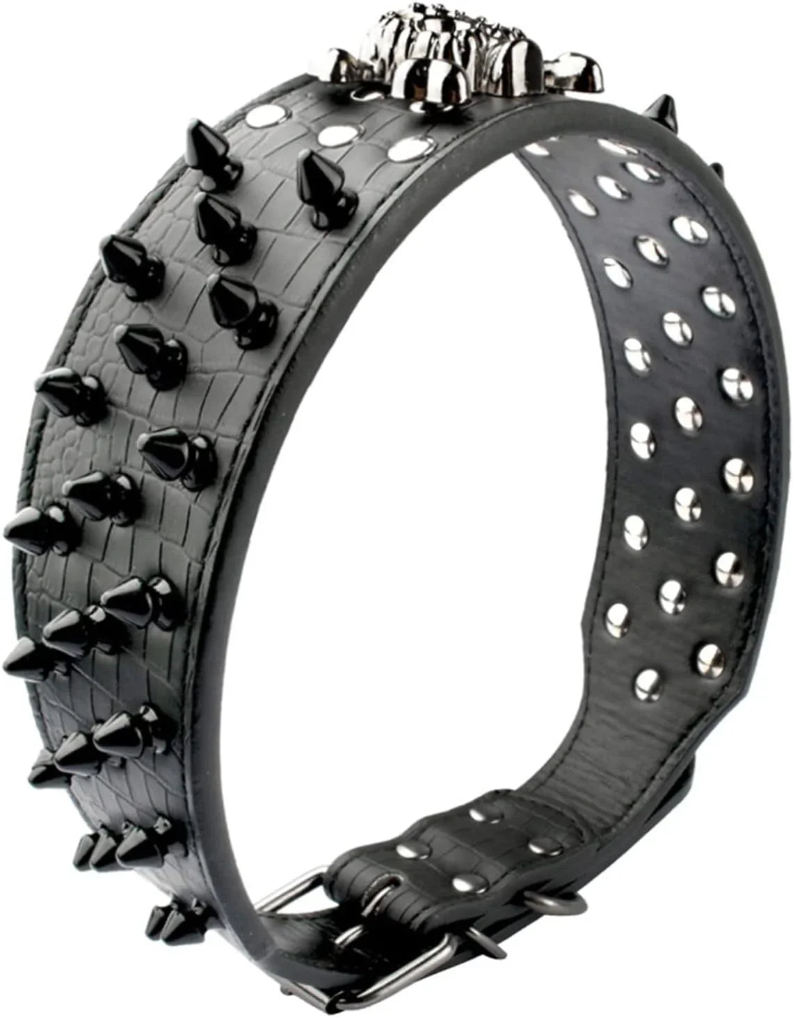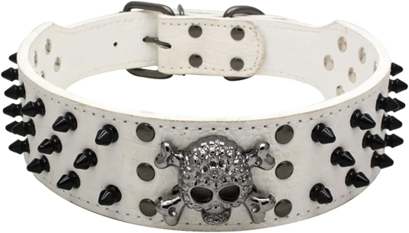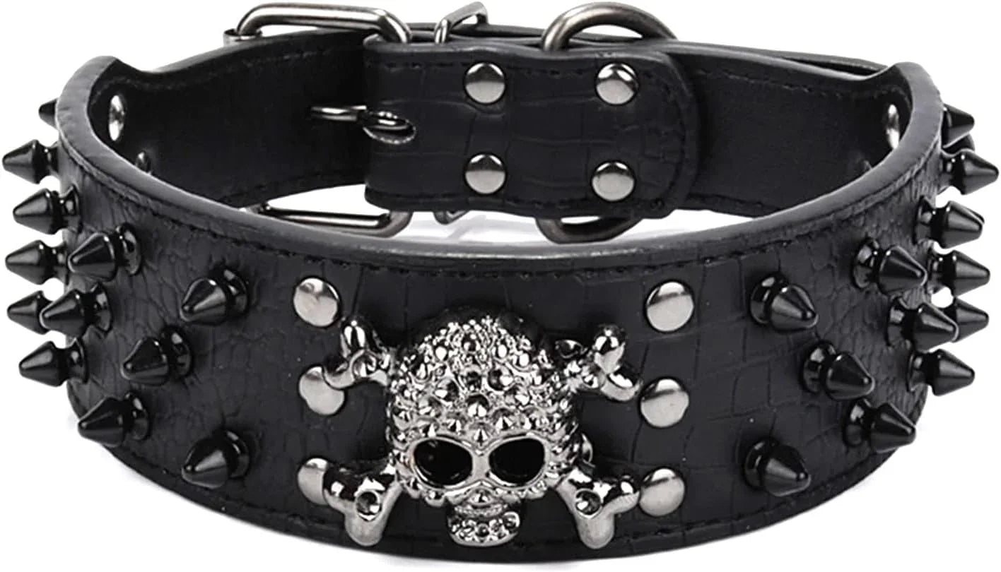 Adjustable Spiked Skull Leather Dog Collar, Bullet Rivets Studded Croco Faux Leather Collar for Small Medium Large Dogs as Labrador Pit Bull Bulldog Pugs Boxers