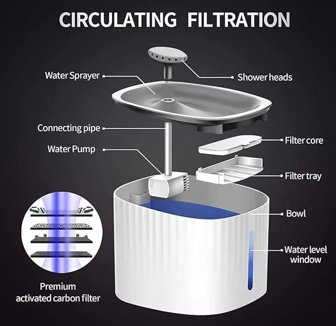 - [FILTRATION CIRCULATION SYSTEM] : 360-degree circulation filtration, 24 hours non-intermittent purification, pet water dispenser is equipped with a filter, each filter is composed of nylon and fiber layer.