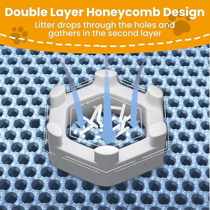 Cat Litter Mat, 60x45cm Large Honeycomb Double Layer Cat Litter Trapping Mat, Non-Slip Waterproof Urine Proof Cat Litter Box Mat, Kitten Supplies and Essentials