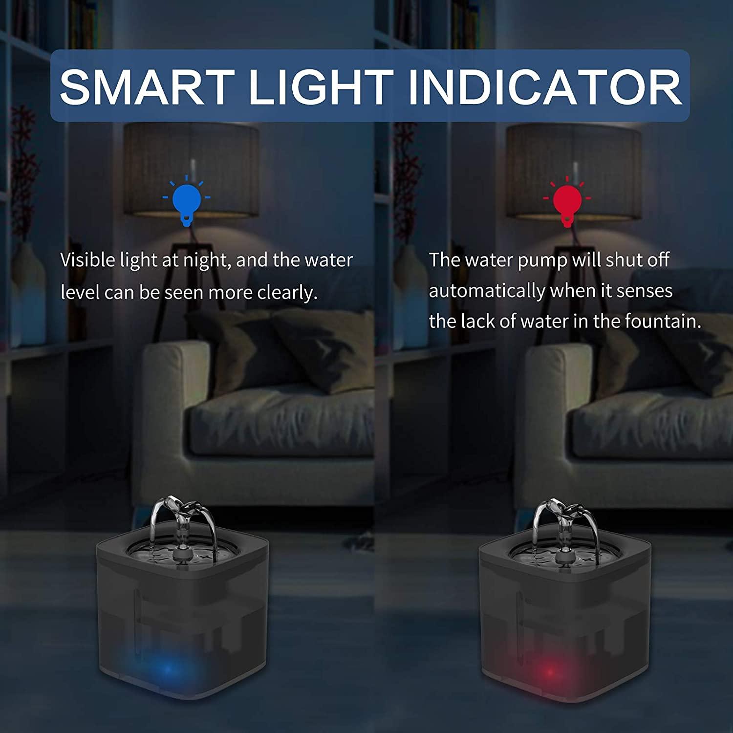 - 【New Upgraded Working Pump】:Smart Light can easily remind you of the fountain's working status. It will indicate water shortage and remind you when you need to replace the filter.