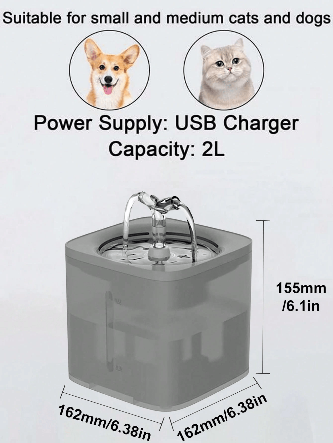 - 【Large Capacity & Window】: 68oz/ 2L water fountain for small to medium sized pets. The circulation system helps provide maximum oxygenation for fresher, better-tasting water and entices dogs and cats to drink more water. The pump will shut off automatically when it senses a lack of water in the fountain.