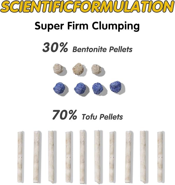 - 【EXCELLENT ODOR CONTROL】: 70% tofu cat litter, 30% bentonite cat litter. This natural cat litter is light and dust-free, can absorb 400% of its weight in water, it can effectively reduce the consumption of cat litter and maintain a clean and fresh smell.