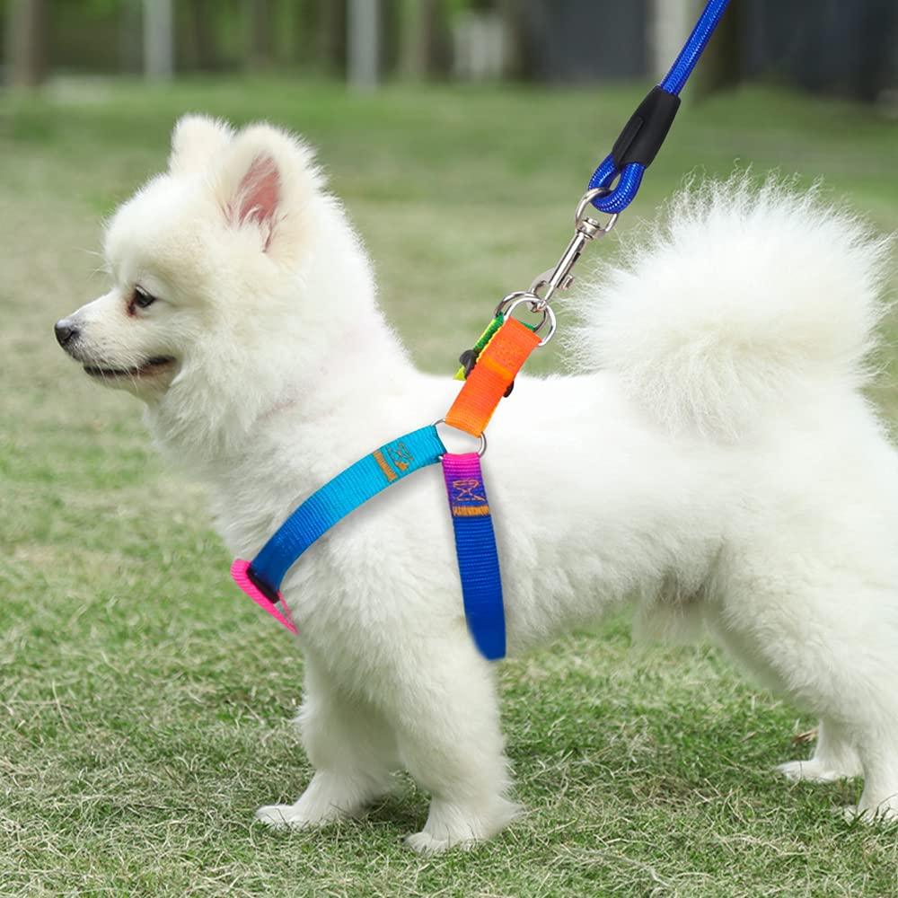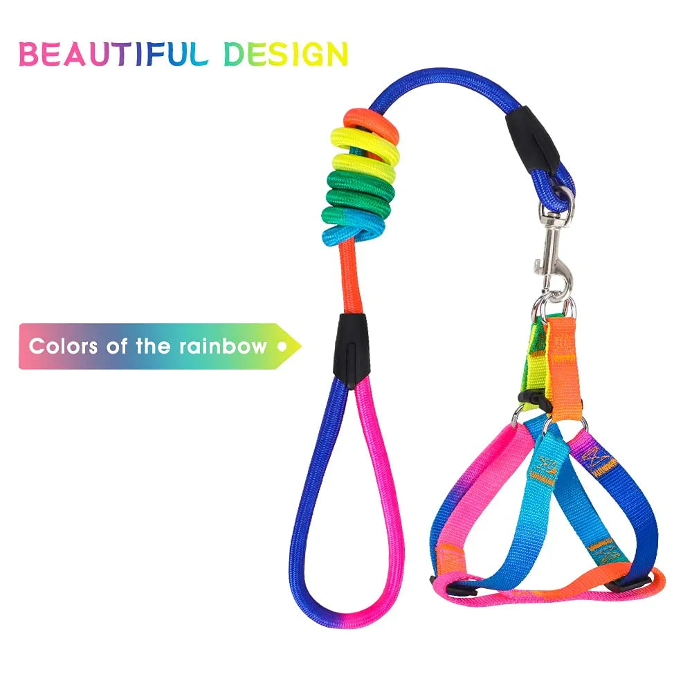 Dog Rainbow Harness Leash Durable No Pull Adjustable Safe Nylon Walking Leash for Small to Medium Dog
