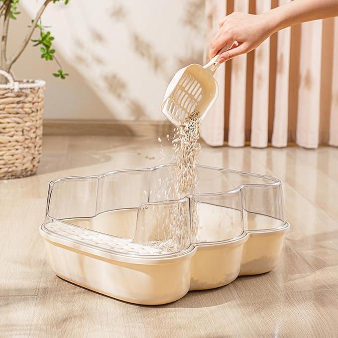 - 【Practical】:Semi enclosed kitty litter pan comes with a to facilitate the to clean the cat litter and feces, making the cleaning work easier and more efficient