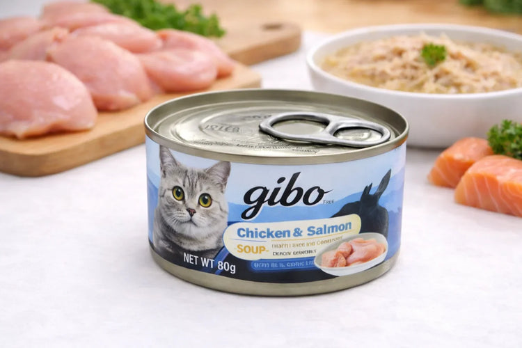 Order on WhatsAppGibo Chicken & Salmon Soup (80g) হলো grain-free, সুস্বাদু ও হালকা স্যুপ টাইপ ক্যাট ফুড, যা real chicken ও salmon দিয়ে তৈরি। নরম টেক্সচার ও সহজে হজমযোগ্য ফর্মুলা থাকার কারণে সব বয়সের বিড়ালের জন্য উপযোগী এবং দৈনন্দিন খাবার বা topper হিসেবে আদর্শ।