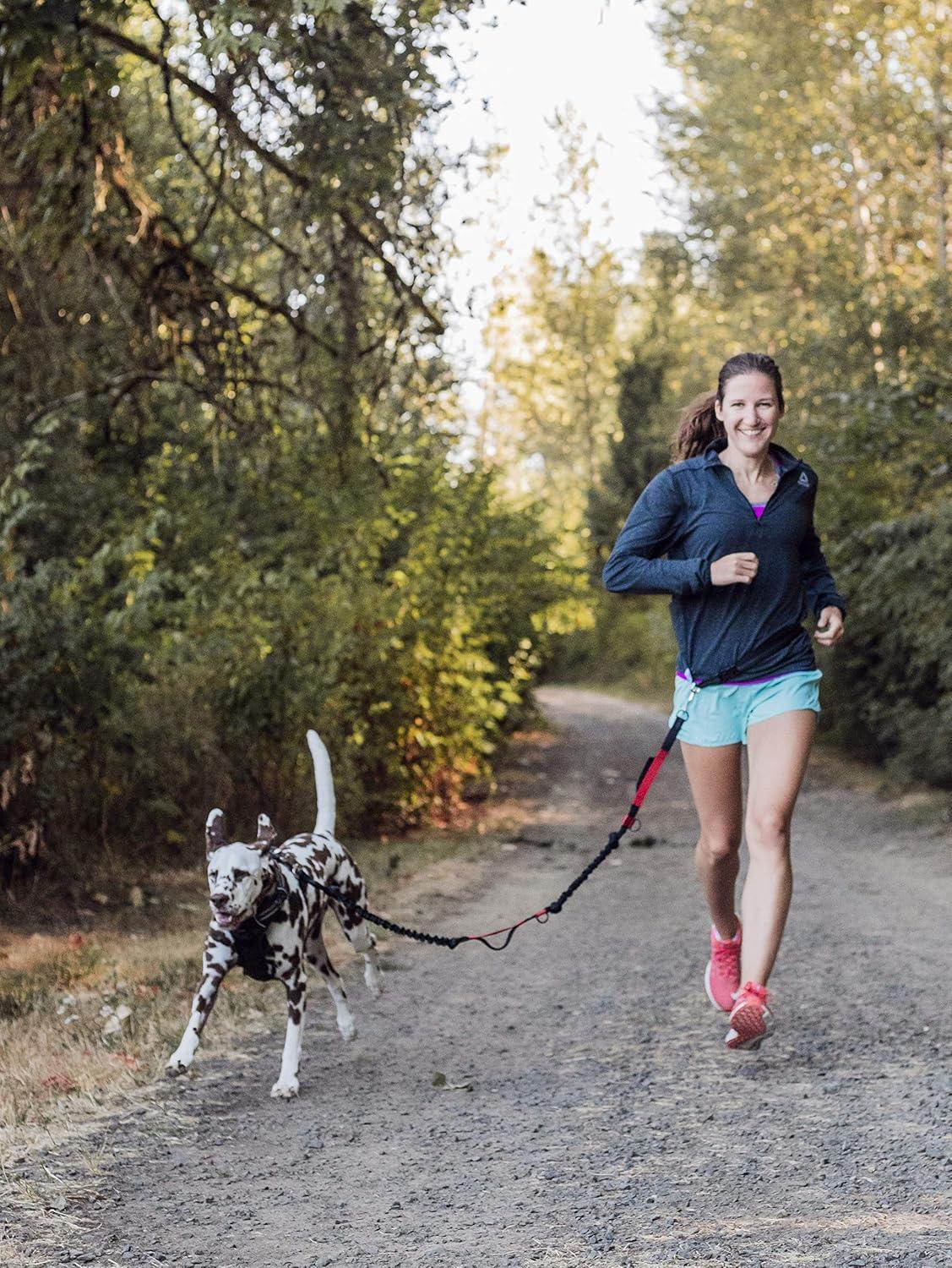 Hands Free Dog Leash, Adjustable Waist Belt and Dual-Handle Retractable Bungee Leash, Jogging Dog Leash with Reflective Stitching, Random Colors