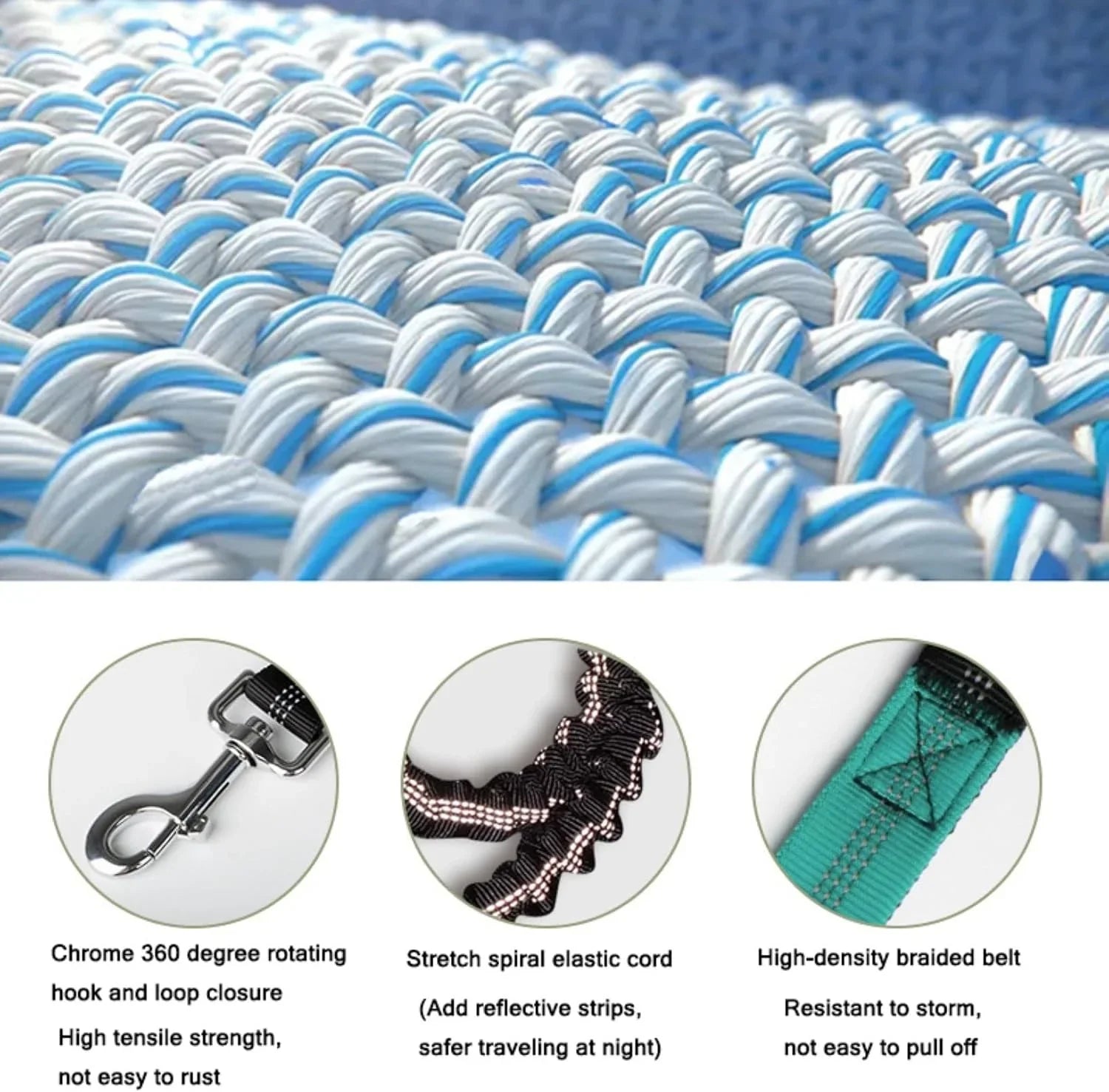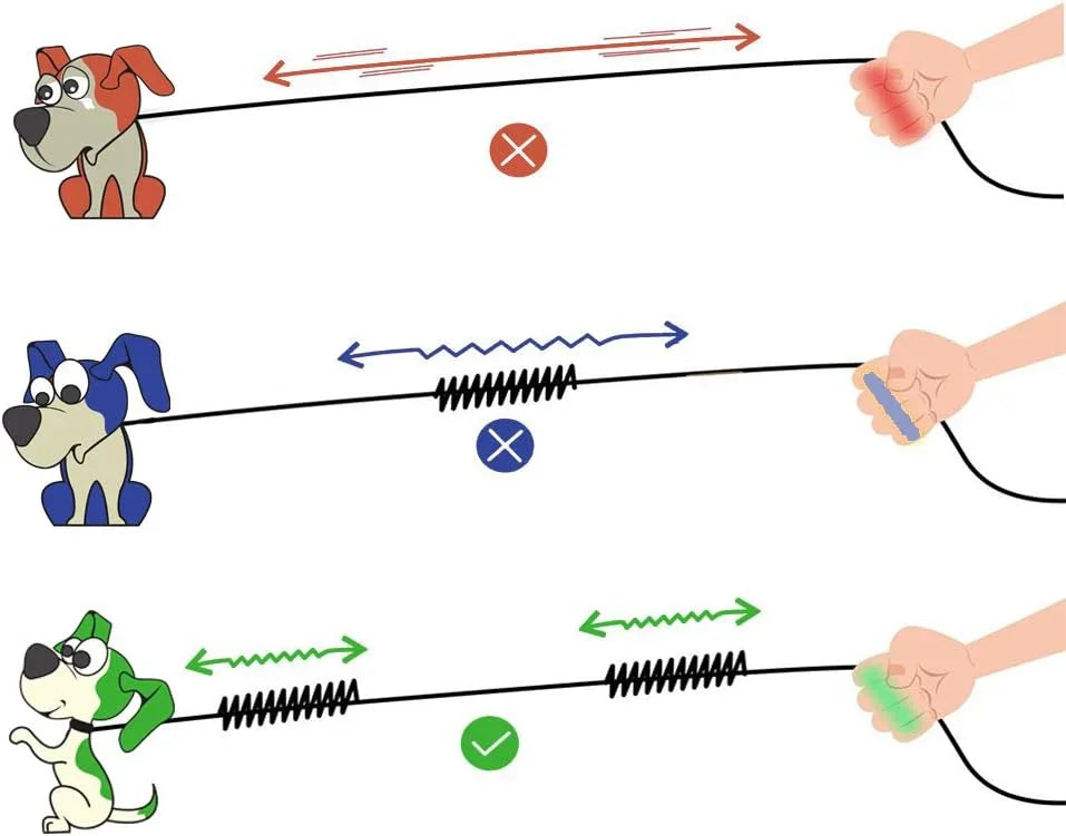 - The shock absorber can be extended by 72 inches, suitable for dogs of all sizes, can withstand up to 80 pounds, and reduce the risk of back strain,Both owners and pets are comfortable.