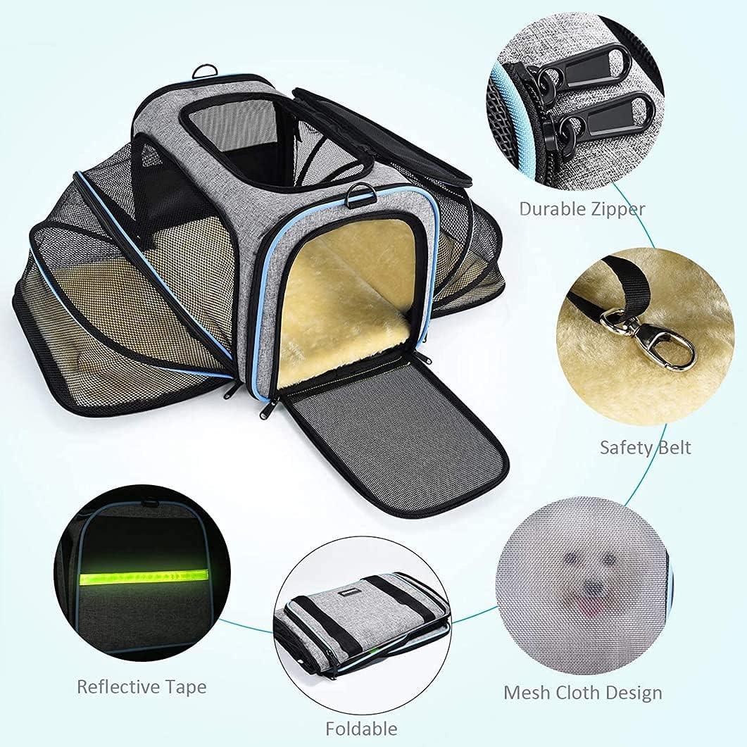 - AIRPLANE APPROVED: Dog travel carrier compliance with airline standard size, fit under the front cabin seat of most airline carriers. Mesh cloth increase ventilation and decrease anxiety for traveling. Carry the expandable carrier on airplane, car, by hand or shoulder.