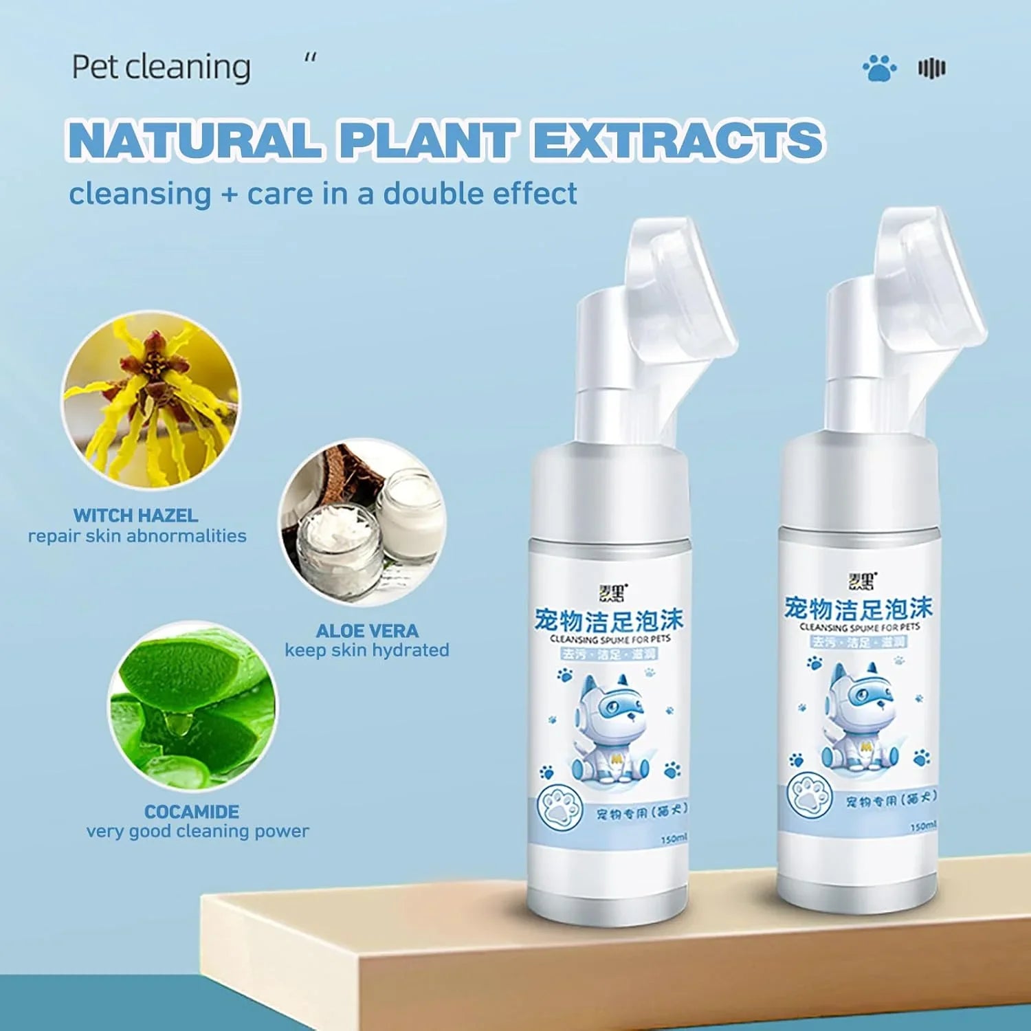 - EFFICIENT FEET CLEANING: This pet foot cleaning foam comes with a removable and washable silicone brush that allows you to easily apply the cleaner when cleaning and rinsing your pet's feet. A practical and convenient product that can effectively clean your pet's feet without causing discomfort