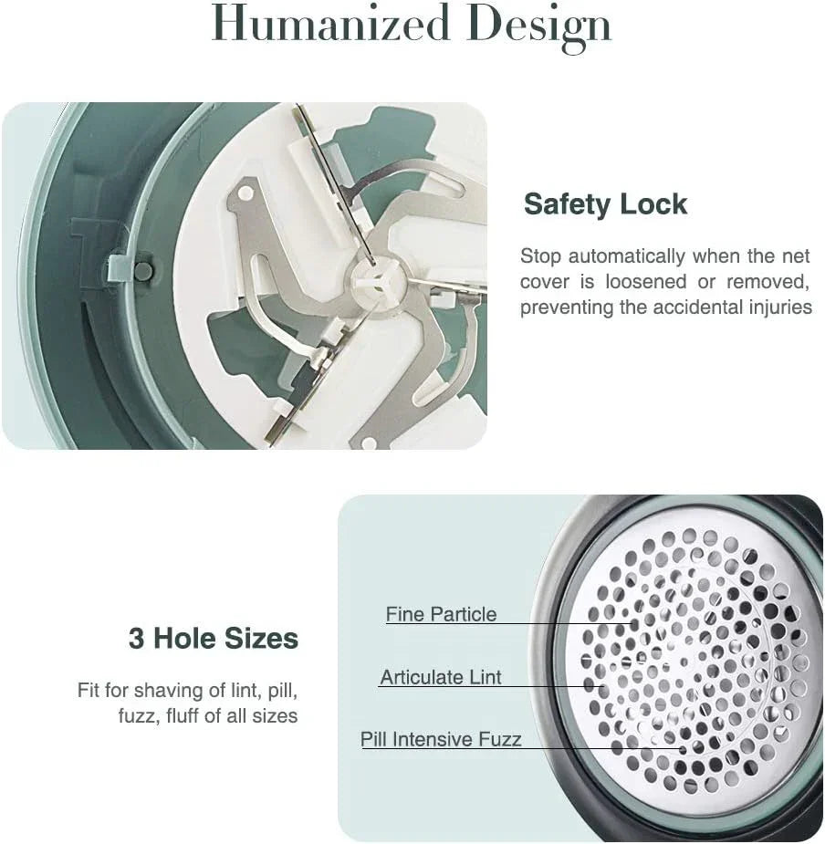 - Safety closure: this electric lint razor is equipped with a safety lock as standard that stops working immediately when the lid is opened or loose, and is ready to use again after tightening the lid. This humanised design prevents fingers and fabric from being accidentally cut off.