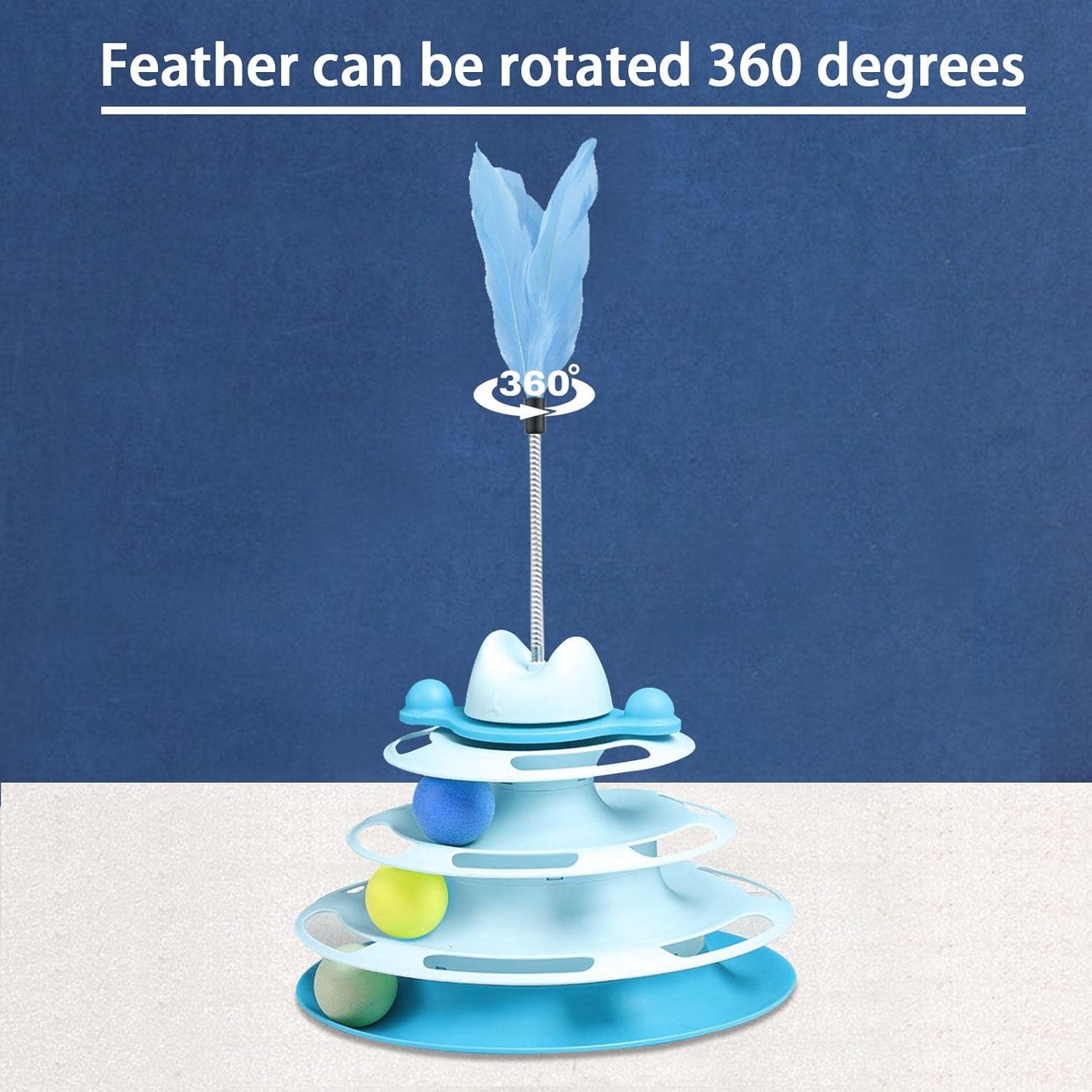 Order on WhatsApp- Turntable Design: The Roller Kitten Toys is inspiring with its gorgeous feathers, 360-degree rotating feathers that dance like sparrows. The hollowed-out track in layers, surrounded by colorful balls. With a four-tier cat tower, it is a natural cat toy.