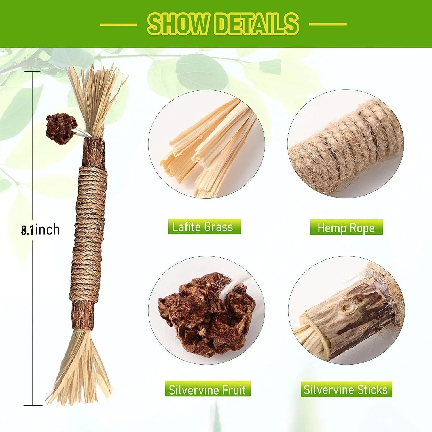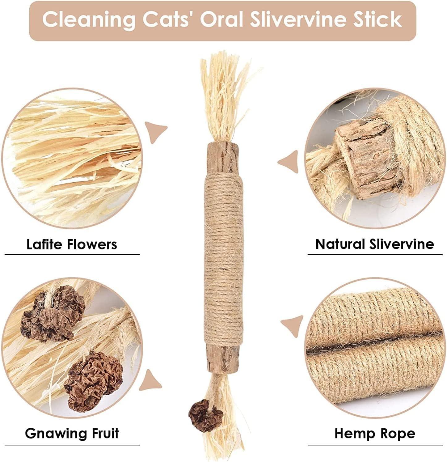 - 【Teeth Grinding and Cleaning】Cat chew stick can clean and grind their teeth while eating silvervine for cats to effectively remove plaque and tartar, improve oral hygiene, keep fresh breath and help prevent gum disease.