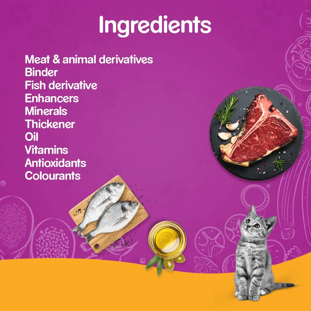 1. Whiskas® Chicken in Gravy is a complete and balanced meal by itself 2. Give your pet clean drinking water with every meal 3. Serve on a daily basis, as per your cat’s body weight 4. Serve dry cat food and wet cat food in different bowls 5. It is recommended to feed twice a day 6. In case your pet does not enjoy Whiskas® cat food, continue with the mixture of Whiskas® cat food and current food for a few more days