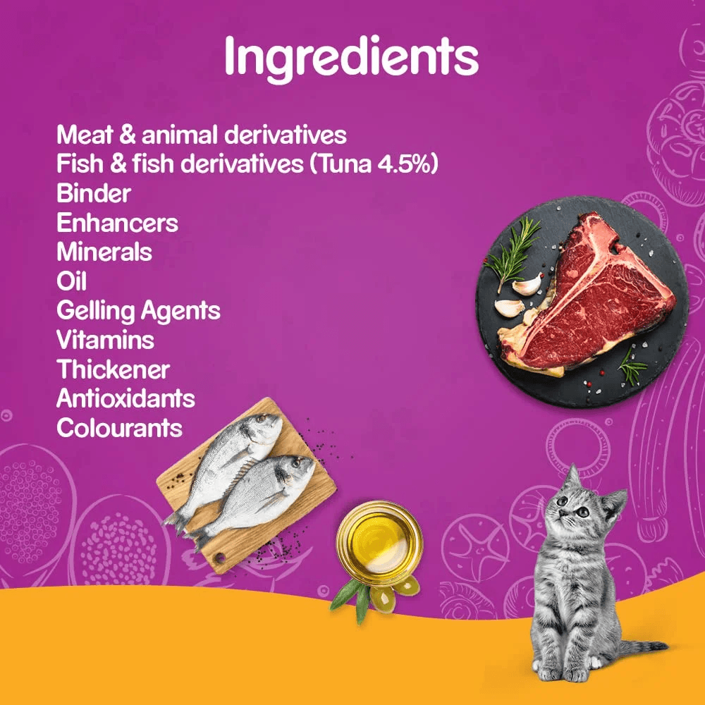 1. Whiskas® Chicken in Gravy is a complete and balanced meal by itself 2. Give your pet clean drinking water with every meal 3. Serve on a daily basis, as per the cat’s body weight 4. Serve dry kitten food and wet kitten food in different bowls 5. It is recommended to feed twice a day 6.In case your pet does not enjoy Whiskas® kitten food, continue with the mixture of Whiskas® kitten food and current food for a few more days